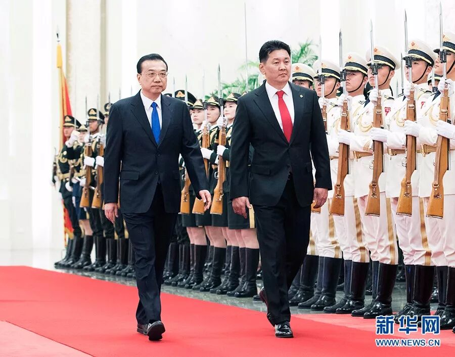 1)李克强在北京人民大会堂同来华进行正式访问的蒙古国总理呼日勒苏赫举行会谈。
