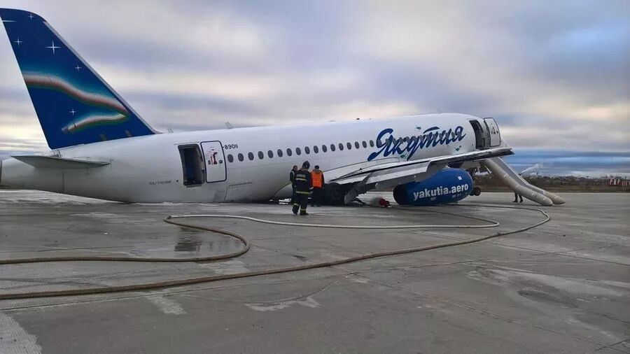 8)惊险!俄罗斯载96人客机偏离跑道:前轮悬空机尾着地,引擎严重受损。