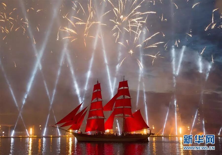 8)俄罗斯圣彼得堡欢庆一年一度的“红帆节”,庆祝中学生们毕业,走向人生新的起点。