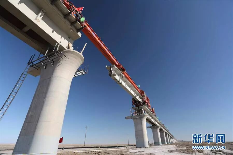 2)格库铁路(青海格尔木——新疆库尔勒)最长铁路桥——新疆台特玛湖特大桥实现合龙。