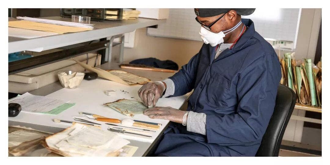 专业人员正在修复火灾损坏的档案